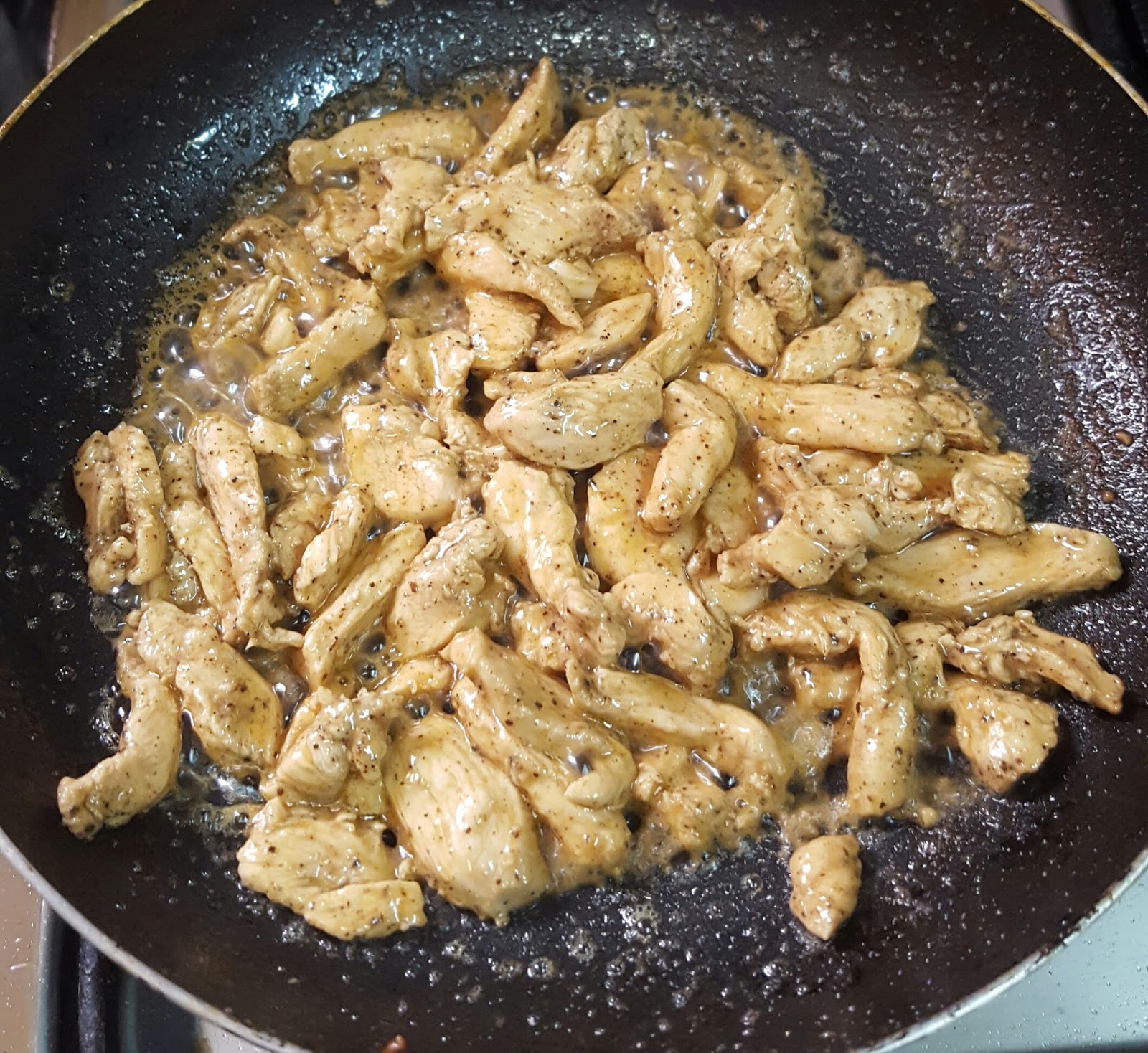 - Cut the chicken to thin slices (do it when its semi frozen,you will get neat slices)