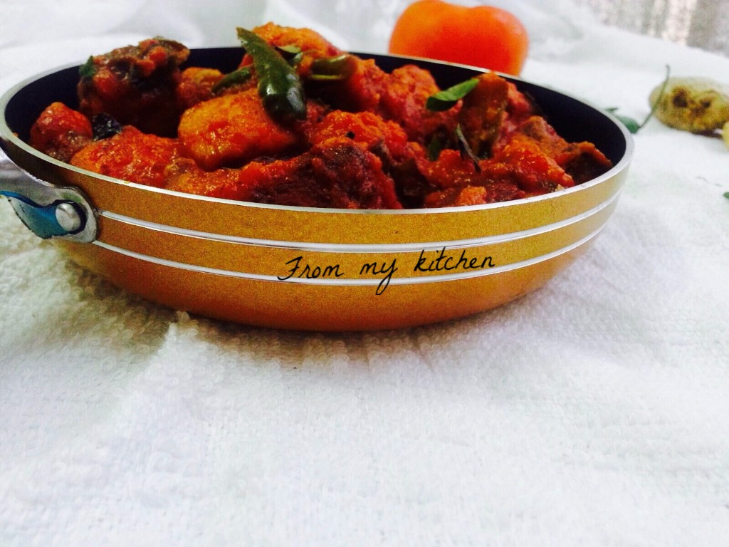 I love tomatoes and garlic!My mom use to make a tomato chicken which is very yummy!Actually I intended to make that but when I started cooking I made some of my twists and this yummilicious dish came out.The fried chicken in this dish take it to another level.Try it out,it was super yumm!