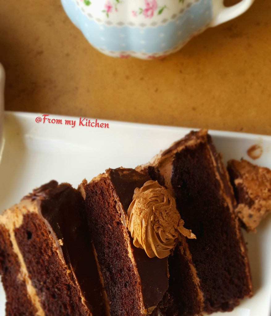 Isn’t that slices looking gorgeous? For almost all cakes that require icing, i used to bake this chocolate cake.Made it on Kshif’s request and saved it to share during the time of Eid.Kashif was eagerly waiting for Azaan so that he can have a slice,and until I’ve clicked was hiding it from my toddler hehe!