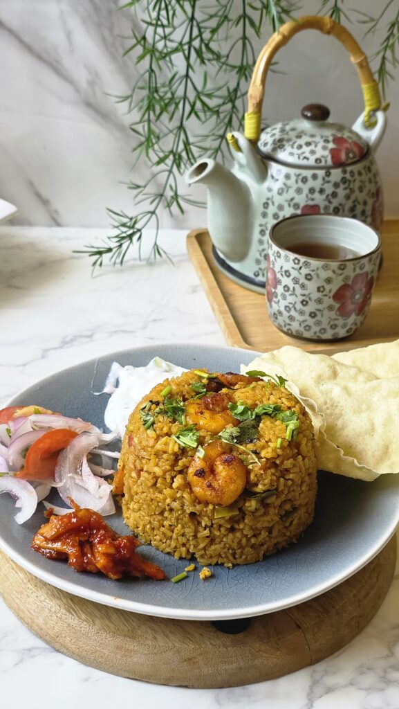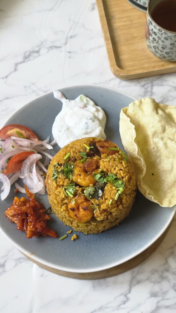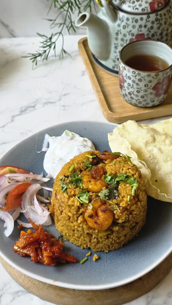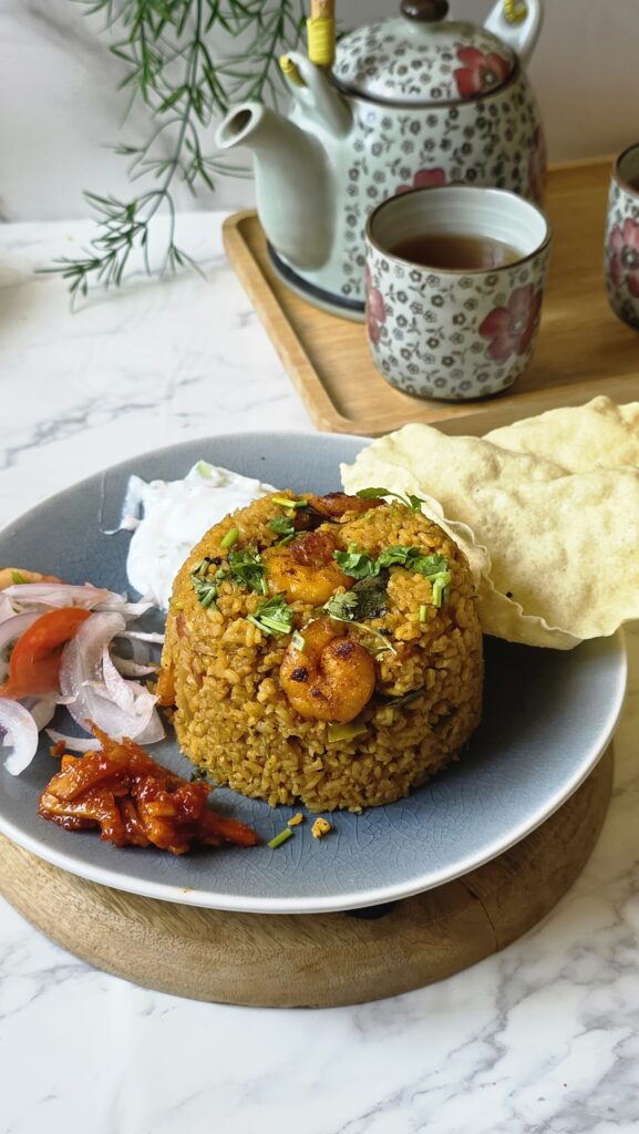 Thengachor, or coconut rice, is a typical Malabar delicacy often made with seafood, such as mussels or prawns. The rich coconut milk base, paired with earthy spices, gives it that warm depth. Then you throw in seafood like mussels (kallumakkaya) or prawns, and it transforms into something truly indulgent. The seafood soaks up all that spiced coconut gravy, and the rice becomes aromatic and so good